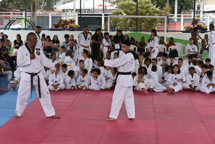 “Hoje estamos realizando a troca de faixa dos alunos de taekwondo do programa Viver bem, que é um excelente exercício e ajuda promover benefícios importante tais como: fortalecimento do corpo, aumentando a flexibilidade dos alunos, no ambiente escolas e melhorando seus reflexos, autocontrole e sua autoconfiança, e aperfeiçoando suas habilidades e principalmente a capacidade de concentração. É um dia mágico e com muita alegria aqui na arena”, disse a coordenadora esportiva do programa, Fernanda Ramos.