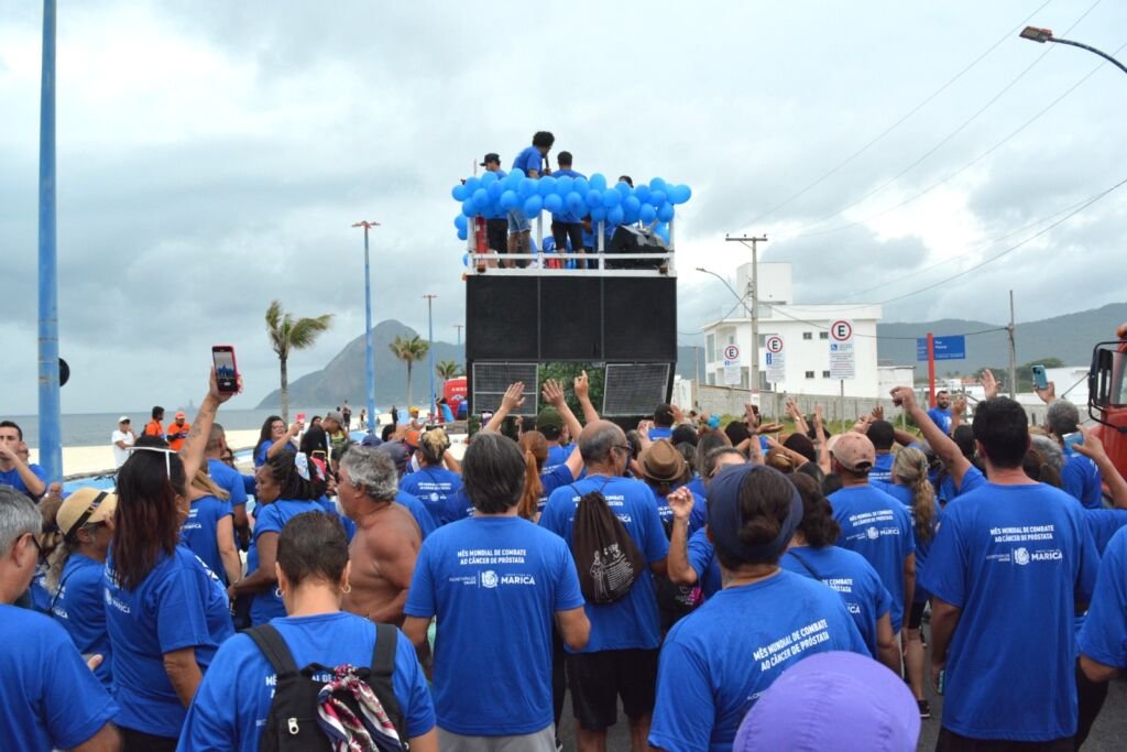 A Prefeitura de Maricá, por meio da Secretaria de Saúde, realizou no domingo (19/11) a Caminhada do Novembro Azul na Praia de Itaipuaçu, com percurso entre a Rua Rio de Janeiro e a Lona Cultural. Na atividade, centenas de pessoas se uniram para chamar atenção para o tema do cuidado integral com a saúde do homem, marcando o mês de conscientização sobre o câncer de próstata, e também o Novembrinho Azul, campanha que destaca a prevenção aos tumores que ocorrem no pênis e testículo de crianças e adolescentes.